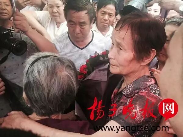 昨天中午,载着王桂芳老人的车开进益庄村,看到王家的子孙们专门打出“欢迎亲人回家”的红色横幅,听到敲锣打鼓、鞭炮齐鸣的声音,见到自己的姐姐和侄儿们,王桂芳老人大哭起来:“找到家,能再看亲人一眼,我死了也值得了。”