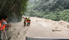 刚走到近百米,后方传来声响,崔鉴用来牵引的绳索中段被山洪冲到了河心。一旦牵引绳索缠到洪水中夹杂的山石,巨大的惯性将把系在绳索上的崔鉴卷进滚滚的山洪中。