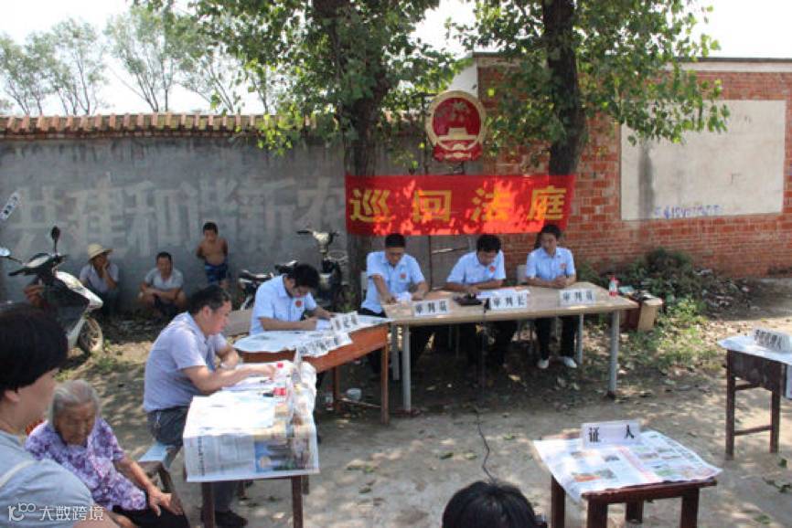 一面土坯墙上挂着法徽,一个农家院子里十几个人围坐在一面石桌旁,最高人民法院第一巡回法庭就这样开庭了,在距离“总部”北京2500公里的海南中部,在一个偏僻小山村里。