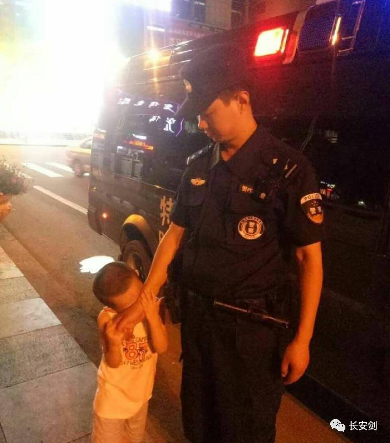 路过的群众说,小男孩一定是走丢了,要不然怎么会拉着警察的胳膊哭得这么伤心?