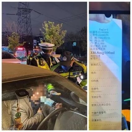 3月21日22:40分,西安交警未央大队民警发现一辆棕色轿车在辅道缓慢行驶,民警立即上前拦截,发现驾驶人涉嫌酒驾,且未携带驾驶证。
