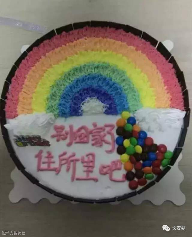 蛋糕上赫然用奶油写着几个大字:“别回家了,住所里吧!”