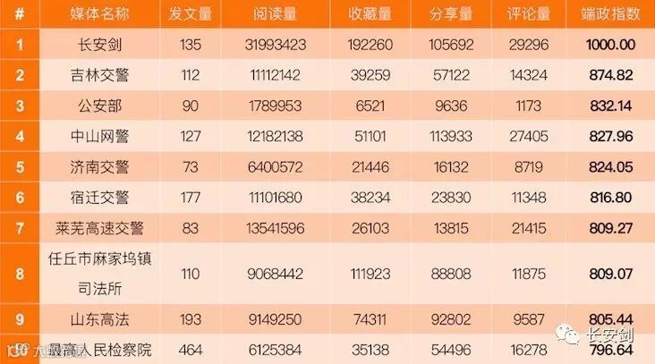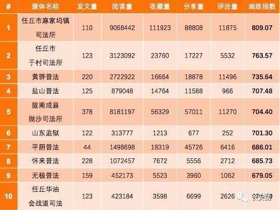 秘密三:从省市基层政法头条号榜来看,公安、检察系统是传统“强队”,优势在继续保持;而司法、信访、反邪教等传统“弱队”则表现亮眼,积极“抢占”了先进位置。为他们的努力点赞!