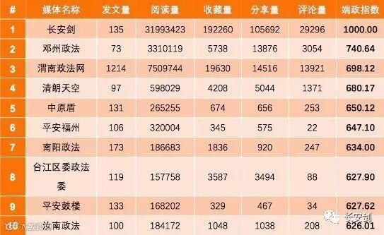 秘密四:从优秀文章榜来看,“发声及时”、“原创为王”及“主动设置议题”堪称上榜的三大武器。在原创比重日渐扩大的评分标准下,单纯靠帐号数、发文量乃至“改装”好文章取胜,空间越来越小。这也提示小伙伴们,要发出政法好声音、传递政法正能量,一定要注意修炼内功,并注重新技术手段的运用,内外兼修,方成大器。