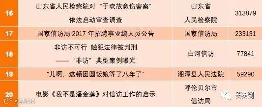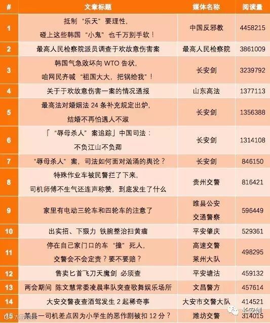 司法行政头条号榜(2017.3.1-2017.2.31)