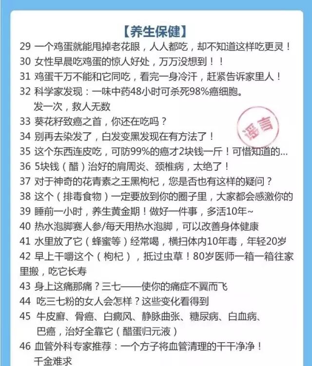 TOP100谣言榜单养生保健类部分
