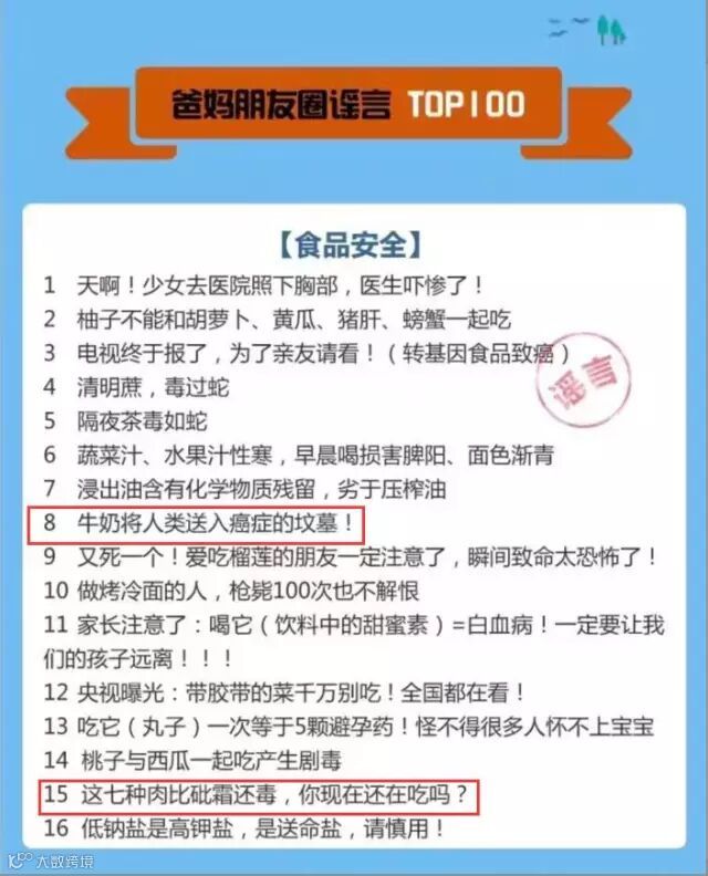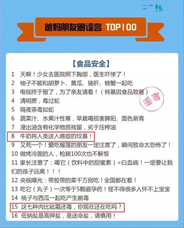TOP100谣言榜单食品安全部分