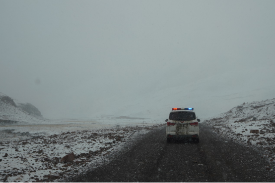 谁知,曲麻莱下了大雪,不少县乡道路结了厚厚的一层冰。
