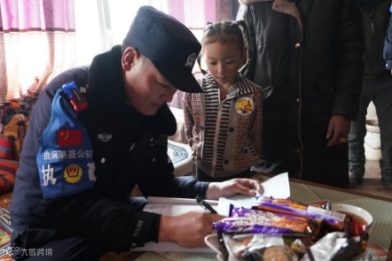 直到5天后,指导员派出寻访小孩家人的民警在300多公里外的玉树找到了孩子们的小姨。