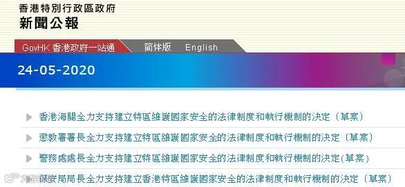 综合特区政府新闻公报消息,特区保安局局长李家超表示,全力支持全国人大的有关草案,会带领各纪律部队全面履行应有职责,竭力维护国家安全。李家超指香港在短短数月内,由世界上最安全的城市之一变成被“黑暴”阴影笼罩的城市;而对于周日(24日)在港岛区发生的严重暴力行为,他强烈谴责暴徒及“港独”分子,并全力支持警方严正执法,他指出,事件证明全国人大正审议的草案有其必要性和迫切性。