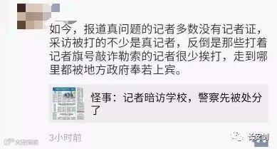 长安君(微信ID:changan-j)做过记者,也深入过警察群体。今天,长安君的朋友圈四分五裂:媒体的朋友在高呼:“舆论监督权不容侵犯!”警界的朋友在悲鸣:“警察永远在当舆论的炮灰,以后谁敢保卫校园安全?”还有吃瓜群众慨叹:“怪事,记者暗访学校,警察先被处分?”
