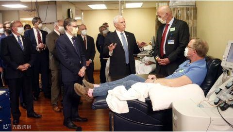 ▲据多家外媒报道,美国副总统彭斯28日带队视察明尼苏达州一家医院,现场所有人都戴了口罩,唯独彭斯是个例外。而他正在探望的,是一位曾确诊新冠肺炎的病人。