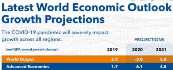 国际货币基金组织(IMF)近日公布了最新的《世界经济展望报告》,预计今年全球经济将萎缩3%,将经历上世纪30年代大萧条以来最严重的经济衰退,程度将比2008年开始的由金融危机引发的衰退更严重。