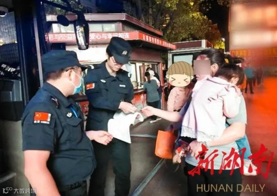 4月16日晚,一名热心市民牵着一个正在哭泣的小女孩找到邵阳快警新宁县步行街1号平台寻求帮助。
