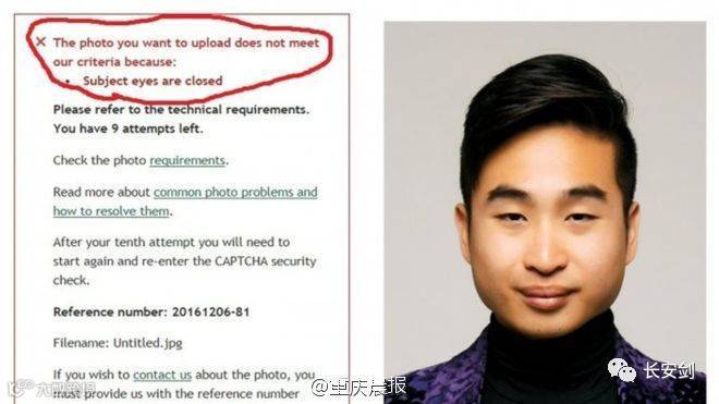1、华裔男子因眼睛小网申护照遭拒 电脑系统判定其在“闭眼” 据BBC报道,新西兰一位华裔男子在申请护照时上传照片被拒,因为计算机软件认为他在照相时没有睁开眼睛。尽管,该男子称已尽可能地做到了明显睁眼...他随后联系了新西兰内政部,被告知照片眼部阴影太重,目前,他已重新提供了新照片。(@重庆晨报)