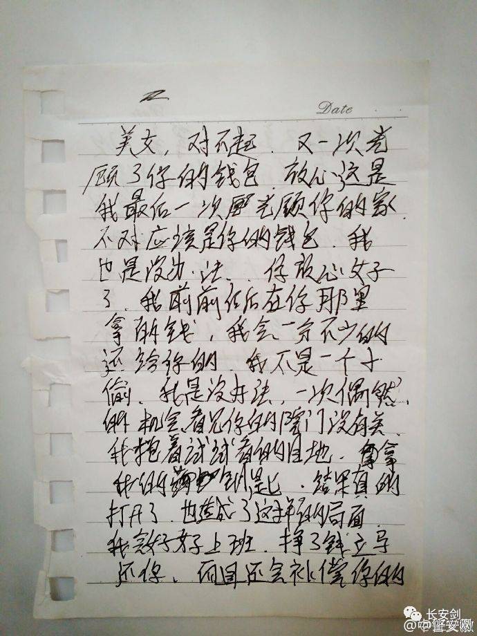 4、留下道歉纸条就不是小偷了? 安徽省广德县居民张某盗窃他人钱包后在现场留下了一张纸条。纸条上自称是逼不得已实施盗窃,并承诺一定归还。自作聪明的他企图借此迷惑受害人不要报警。日前,@广德公安在线 桃州派出所民警成功将张某抓获。(@正义网)
