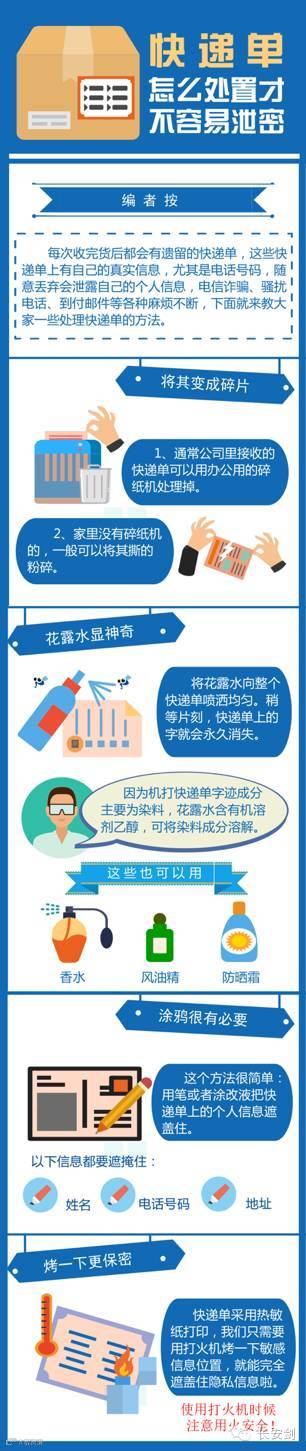 长安君(微信ID:changan-j):小伙伴们,已经收到双十一包裹的长安君,跟大家说声Hi~双十一你败了多少东西?记住:你在某宝花的每一分钱,都将变成沉甸甸的快递,把你的屋子占满!其实,同样“剁手”了无数的长安君,经常困惑一个问题:写满了个人信息的快递单,究竟怎么处理才安全?一旦关键信息遭到泄漏,各类“骚扰电话”、“电信诈骗”事小,被不法分子盯上,威胁你的人身安全可就事大了!