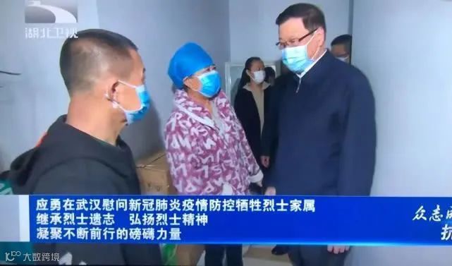 据湖北卫视报道,4月4日下午,湖北省委书记应勇和武汉市委书记王忠林一起在武汉市看望慰问了李文亮、刘智明和吴涌三位新冠肺炎疫情防控牺牲烈士家属。
