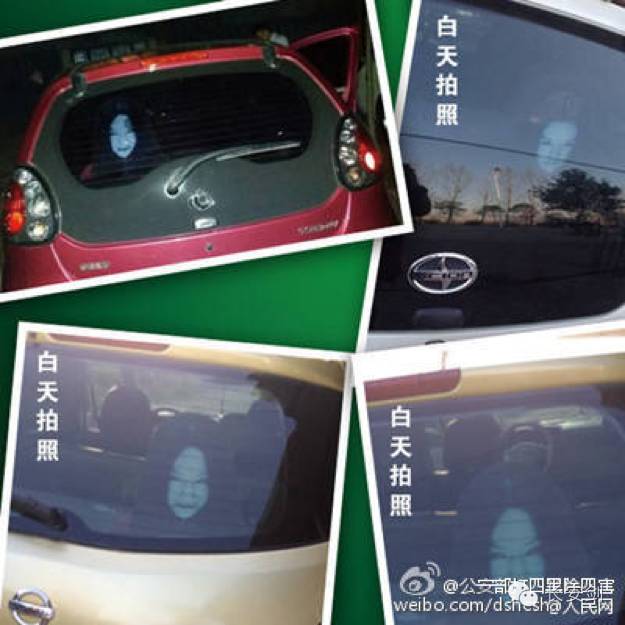 4、用鬼脸恐怖车贴对付远光灯?交警:不可取、或违法! 近期监控显示,有车主把恐怖车贴贴在汽车后挡风玻璃上,以应对滥用远光灯等不文明行车行为。交警称,这种做法不仅影响安全视线,也会惊吓到后车,可能酿成事故。目前,济南对使用恐怖车贴且影响安全驾驶的司机罚100元。(@公安部打四黑除四害)