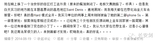 实际上,法国治安混乱不是一天两天了。看看赴法留学小伙伴的亲身体会——