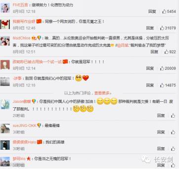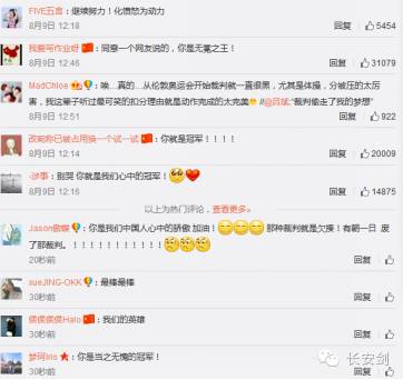 长安君一度以为,会有很多网友把裁判问题上升到政治高度,最起码,也会有人去运动员的微博里,大骂裁判,呼吁奥委会处理。然而,并非如此。对裁判的骂声,有,但是少数。大多数网民将赞誉、掌声和各种爱护的言语,毫不吝惜地献给了我们运动员。