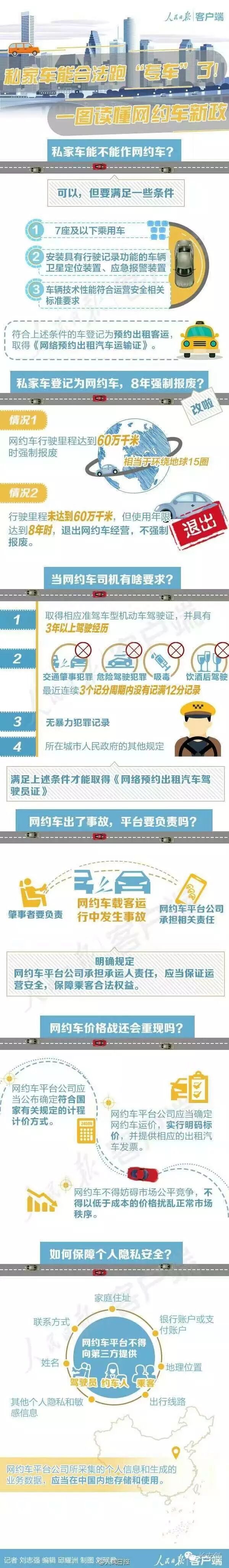 网约车合法化后,满足条件的私家车可按一定程序转为网约车,从事专车运营。此外,鼓励私人小客车合乘。