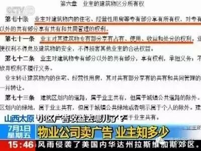 某律师事务所的一位律师称,小区业主的共有财产收益、公共场地的收益,都应该属于小区所有业主的公共收益,应该由业主共同享有、共同管理,这其中包括小区的外墙广告收益、电梯广告收入等。