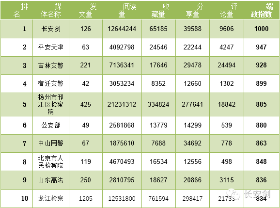 (具体头条号运营数据请参照政法系统总体榜单,以端政指数为序)