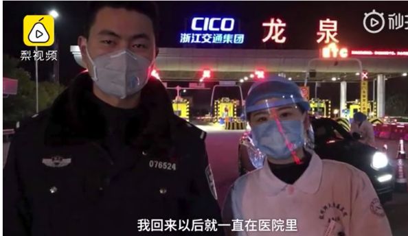 1月23日深夜,浙江龙泉民警曾光磊办完案后赶往派出所值班,车子行驶到高速路口,当他停车接受防控检疫人员检查时,才发现给自己检测体温的护士竟然是新婚妻子。他在朋友圈写道:待到山花烂漫时,我再好好陪你!