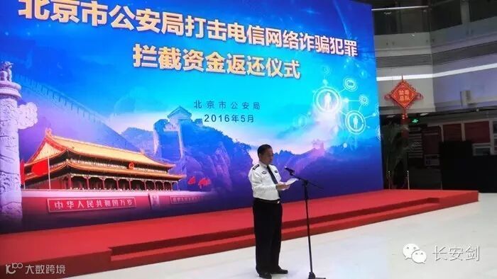 5月18日,北京市公安局举行打击电信诈骗犯罪拦截资金返还仪式,15名来自各地的被骗群众代表现场收到被骗资金580余万元。市公安局2015年以来打击防范电信网络诈骗犯罪拦截的10亿元电信诈骗涉案资金将陆续返还受骗群众。第一批将陆续返还上亿元,涉及数百名受害群众,遍布全国各地,是史上集中返还资金数额最大、受害群众最多的一次。