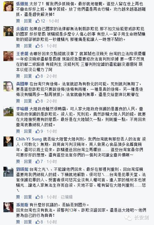于是,虽然台湾岛内有支持这些政客的声音,但更多声音是这样的:有台湾民众一针见血地评论:“抗议的不是台湾人民,而是一些政客的脸挂不住”。有台湾民众投书《联合报》:“诈欺在台湾是轻罪,无法遏止犯罪,现在更出口大陆并扩及全世界,难道这是另类‘台湾之光’?”台湾《旺报》刊文指出,台湾这样的处理结果是再次往受害者的伤口撒盐,让台湾背上“诈骗犯天堂”的污名。台湾《中华日报》发表社论说,这不仅坐实了大陆方面指责台湾“办案不力”的说法,更使台湾形同“诈骗犯的天堂”,除了令人痛心之外,更感愤怒。