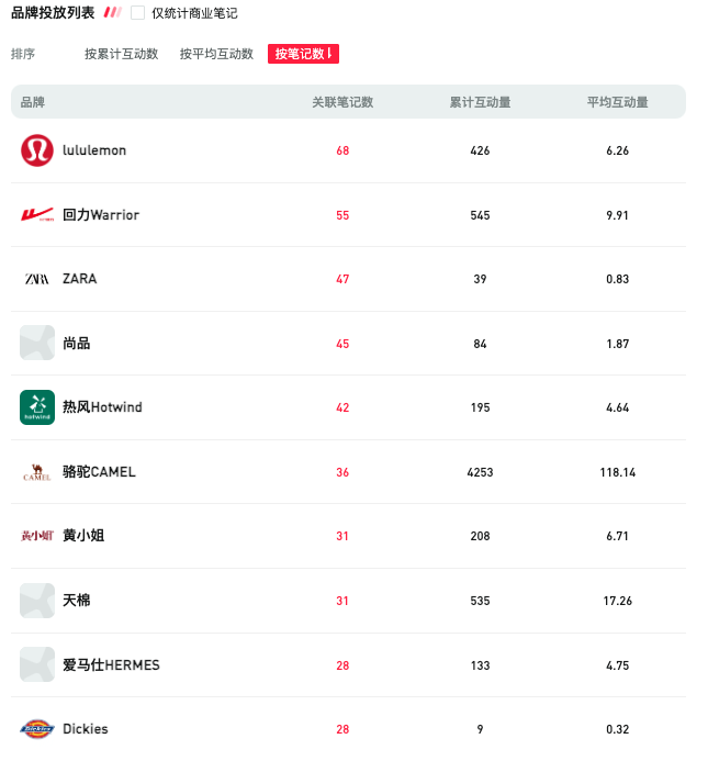 当我们查看了用户者画像,发现竟然企业/品牌号占比高达30%以上,这与上述的商业笔记占比数相悖。点开详情品牌表现,才发现“暗藏玄机”多为投放的KOC和门店销售的账户。