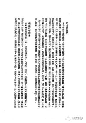 『……本月四日,京师高等检察厅,将许世英传讯拘禁于看守所,并搜索其家宅,既未奉令交办,亦无人告发,而又乏相当之犯罪证据。仅以报纸之攻击、议会之质问、道路之传闻为理由,即行传讯拘禁及搜索,实属意气用事,违背职务。若不加以惩处,恐司法官流于专横,以国家保护秩序之法权,为个人挟嫌报复之利器,必至法厅失其信用,社会蒙其弊害……拟请将京师高等检察厅检察长杨荫杭及检察官张汝霖均以明令停止职务,交司法官惩戒委员会议处。……”』