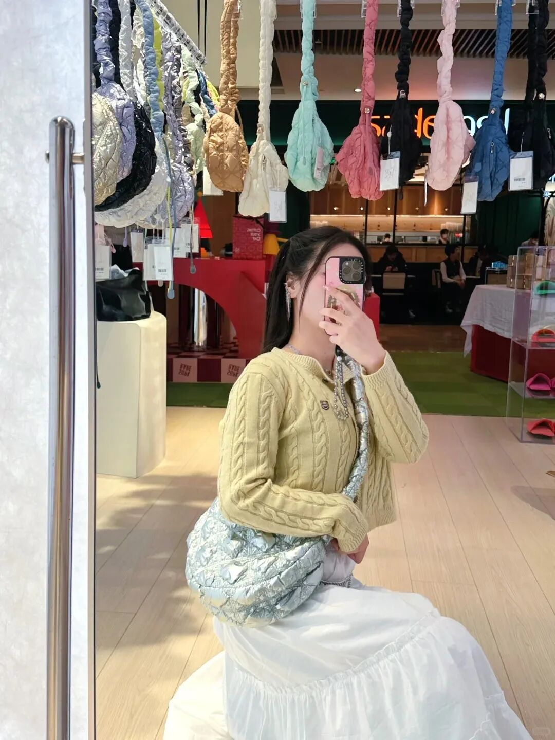 CARLYN标志性的绗缝图案加上亮点的包颜色是这款的特点