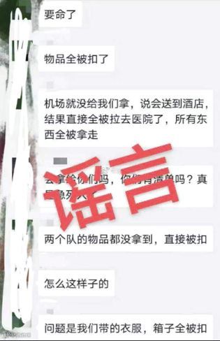 3、支援湖北医疗队物资被扣被盗系谣言 最近,网络上出现多则关于支援湖北医疗队物资丢失的传言,涉及江苏、上海、宁波支援湖北医疗队。官方辟谣:消息不实,不存在物资被扣被盗的情况。(环球网)
