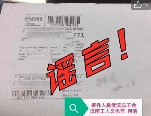 2月14日,有热心网友在微博爆料,质疑他们网上购买的口罩发货单上注明是武汉市总工会汉南工人文化宫,他们在网上卖口罩?