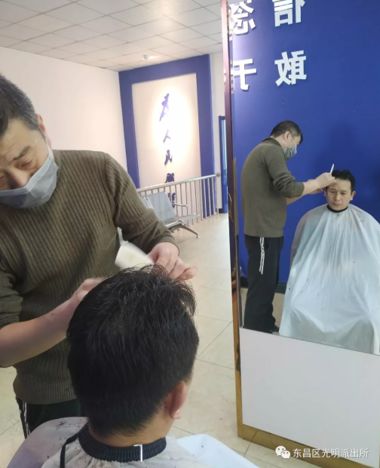 11日上午,吉林通化光明派出所邀请了一位理发师傅,在派出所里开起了“临时理发位”,为抗疫一线民警解决“头等大事”。
