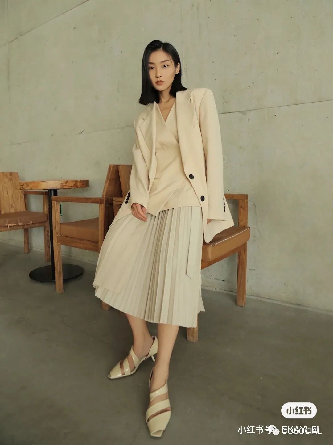 灰粉色西装,抛弃了以往黑白灰西装的沉闷,多了一丝甜美。重新诠释了女性温柔通透的自然形态。