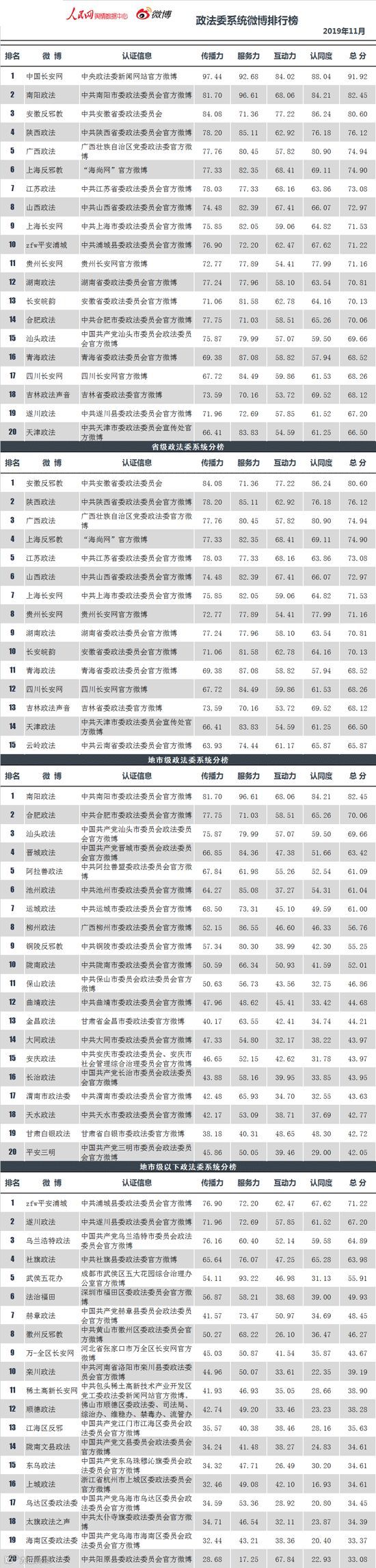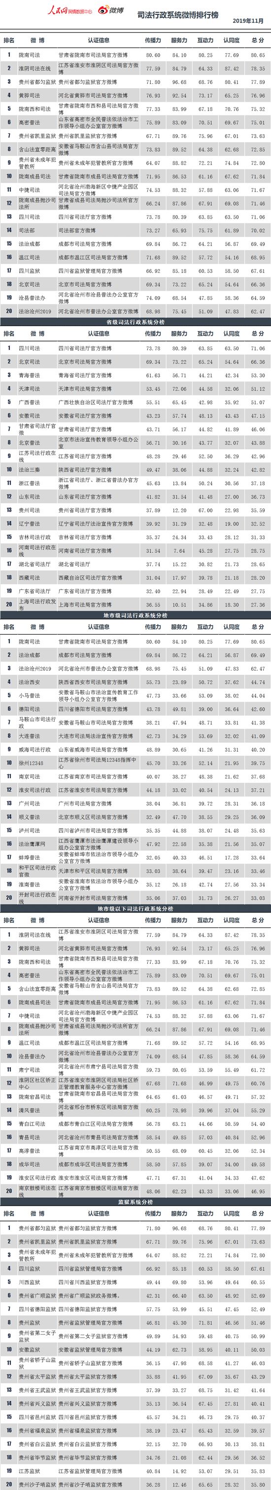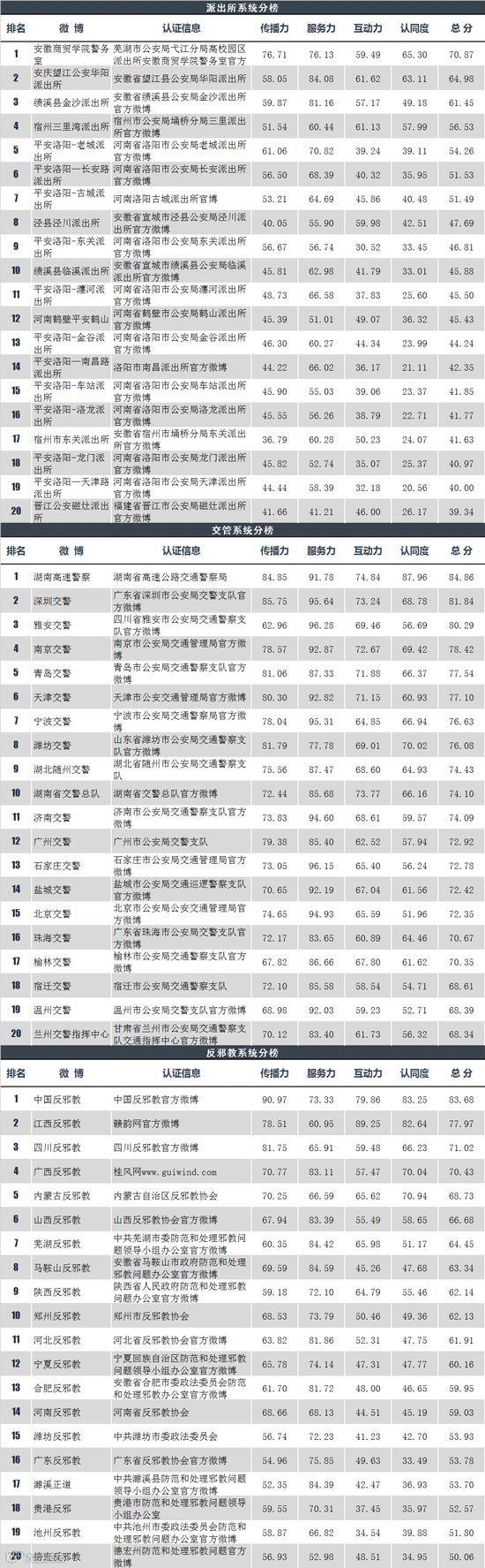 “传播力”表征政法微博发布信息的传播情况,传播力指标越高,说明政法微博的内容被越多的网民看到。“服务力”表征政法微博一对一服务网民、为民办事的情况,服务力指标越高,说明政法机构通过微博平台服务越多的网民。“互动力”表征政法微博发布信息的影响情况,互动力指标越高,说明政法微博的内容引发了越多的网民响应。“认同度”表征网民对于政法微博发布信息的认同情况,得分越高,说明网民对于该政法微博发布信息的认同度越高。
