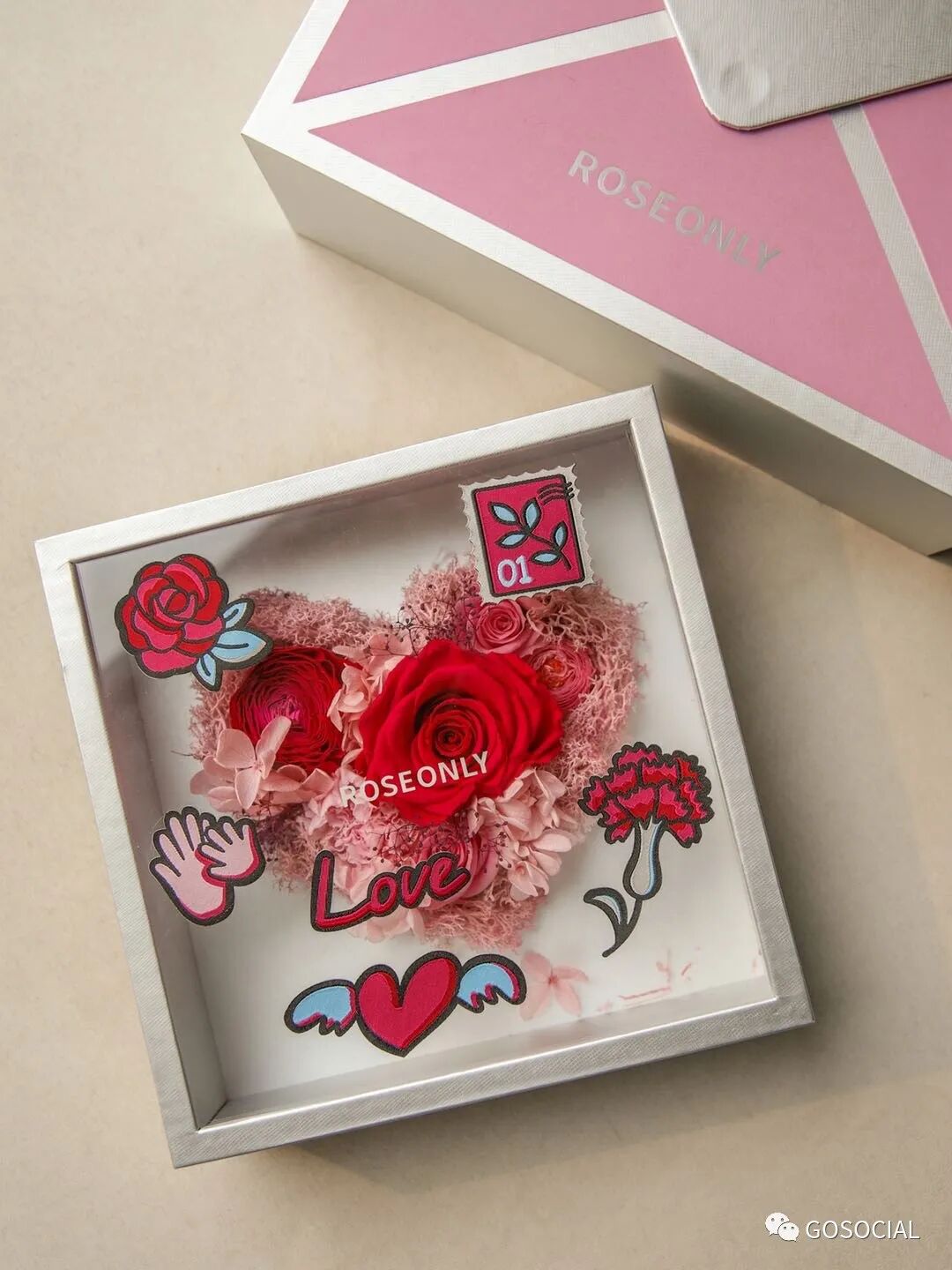 轻启信笺,阅读来自爱的温情与感动。ROSEONLY永生花漾信笺花盒,灵感源自【信】的邮票与信封细节,赋予爱跨越山海的能力。让我们将爱意化作信封,寄去真挚的思念与祝福吧。