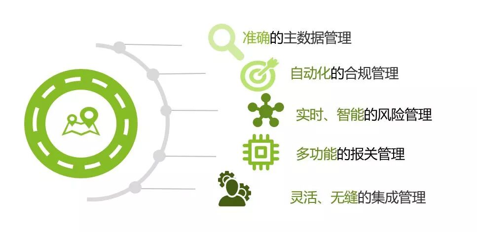 业务功能主要涵盖主数据管理,报关管理,风险管理,合规管理,多系统集成管理。此外,云技术的应用简化了项目实施并可灵活生成模板,帮助企业快速高效地实现业务功能。