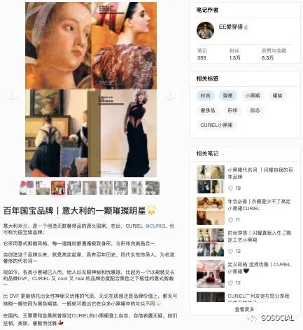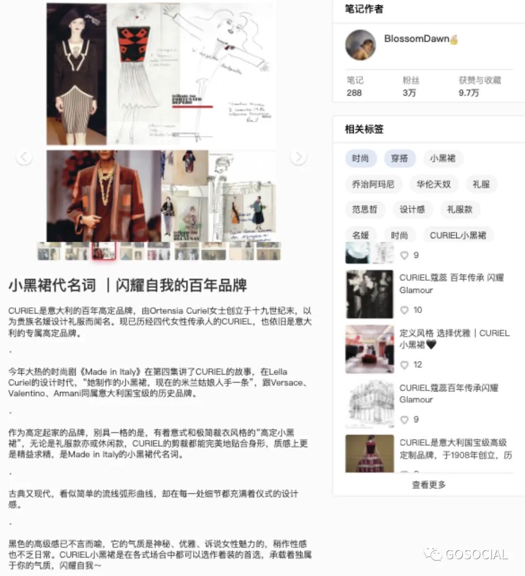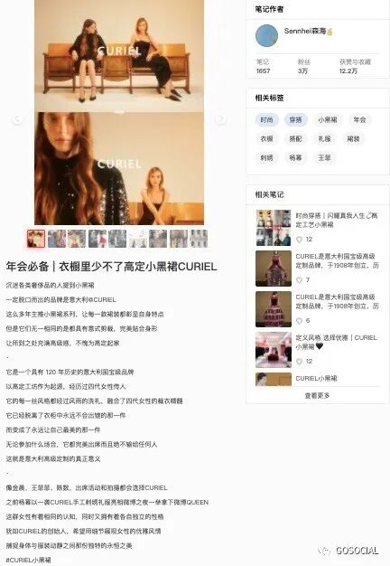GOSOCIAL不仅有时尚博主穿衣为CURIEL宣传,还通过图文直发的合作项目去分享时尚干货为大家阐述CURIEL的文化和传承。