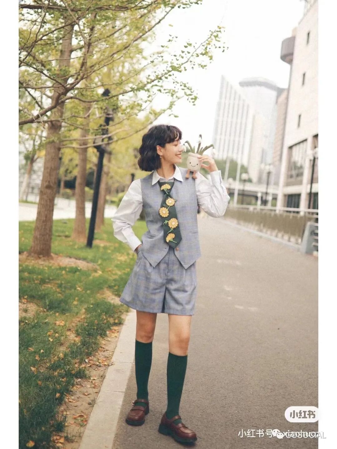 说到三眼皮小伙子这位时尚博主,就会想起她一身格纹马甲搭配小皮鞋,抱着邦尼兔的复古英伦风形象。