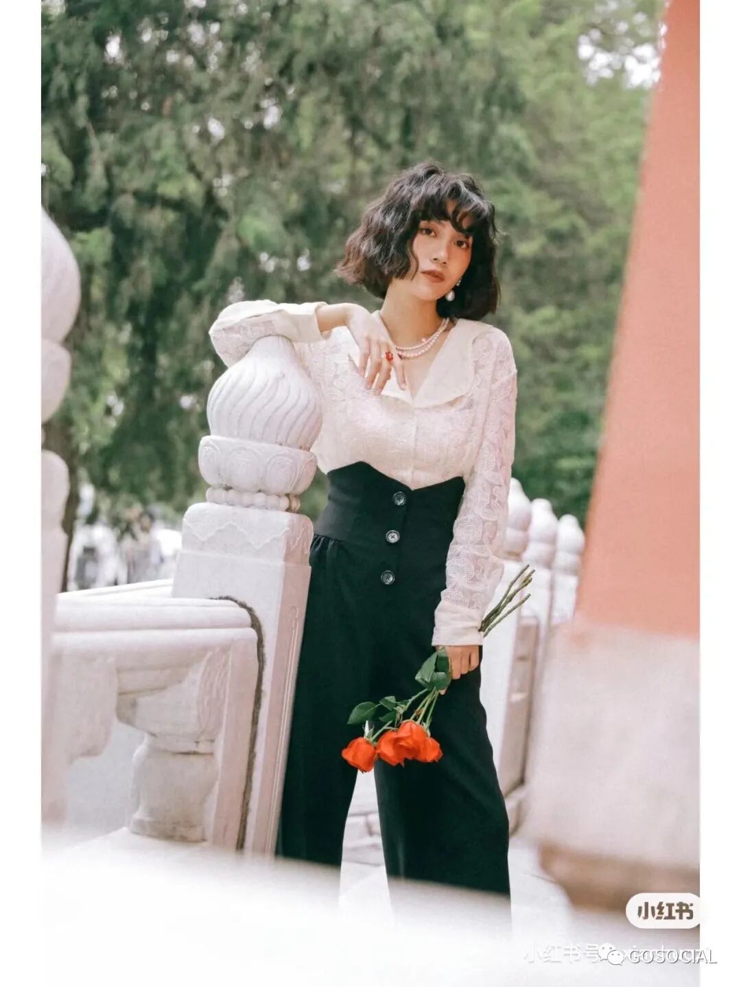 蓬松微乱卷发,珍珠、蕾丝等元素频繁的出现在她的笔记里,笔记的色调也是浓浓的胶片复古感,带有明显的90年代复古气息。
