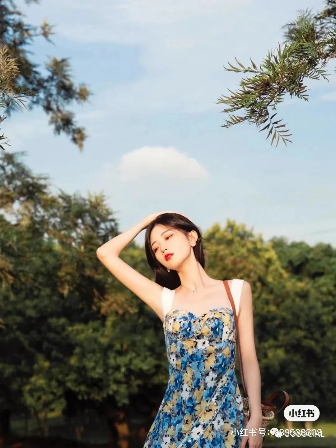 小时黯偏爱法式穿搭。身穿v领丝绒连衣裙的她,走在空旷的草坪上,法式的慵懒随性在她身上得到了很好的演绎。