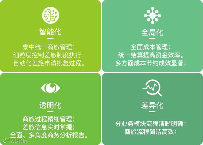 Travel& Expense 将帮助企业实现商务管理智能化,数据信息透明化、成本控制全局化、商旅服务流程化,全方位助力您的智能化差旅管控之路!