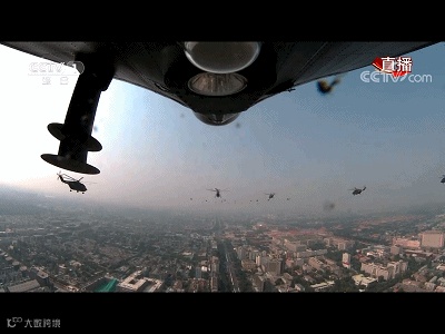 陆航突击梯队:五架直9武装侦察直升机组成侦察警戒分队,九架直10武装直升机组成火力突击分队,三架直19武装直升机、六架直20战术通用直升机、九架直8B运输直升机混编为运输分队,八架直19武装直升机担任护卫任务。其中直20战术通用直升机是首次亮相。