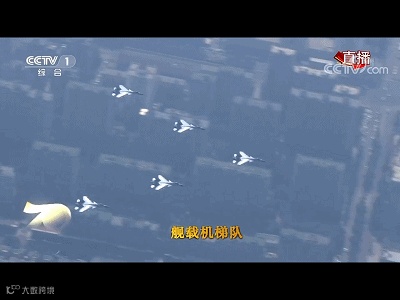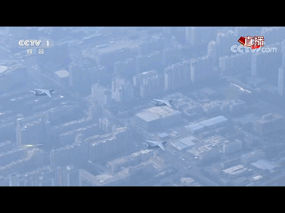 五架歼20,五架歼16,五架歼10C战斗机组成三个楔队。
