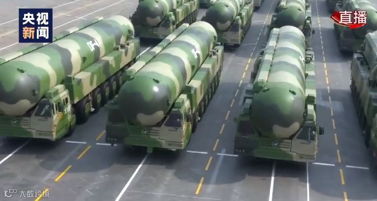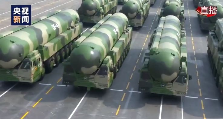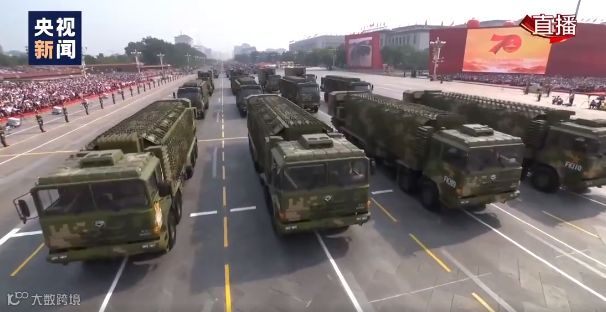 东风-26核常兼备导弹方队领队是张继春少将、刘同江少将。东风-26导弹既能打常规弹,也能搭载核武器,是我军战略威慑体系中的一柄“重锤”。目前,东风-26已完全具备随时能战、准时发射、有效毁伤的作战能力。