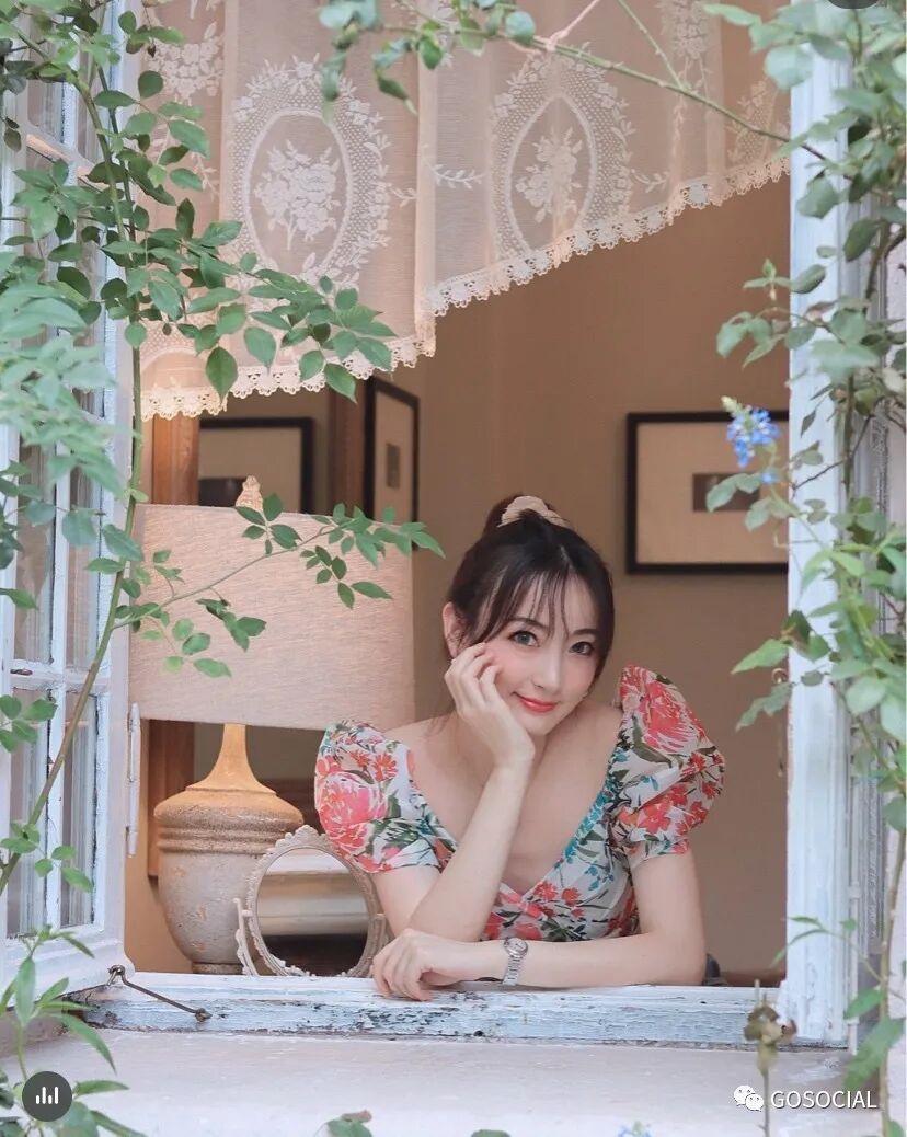 她也很擅长根据环境穿衣,让自己成为画面的焦点。